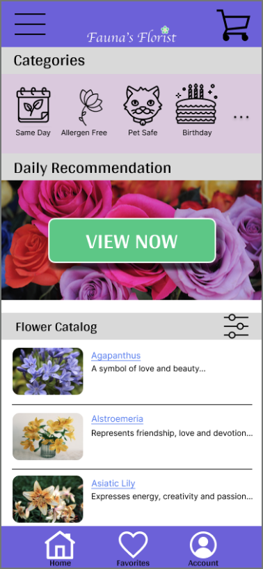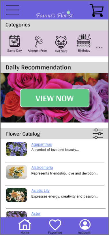 Participants in the usability study mentioned that the app is “easy to navigate and flows well, [and that they] would love to order flowers from this app!” (Participant C).