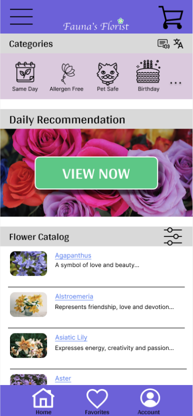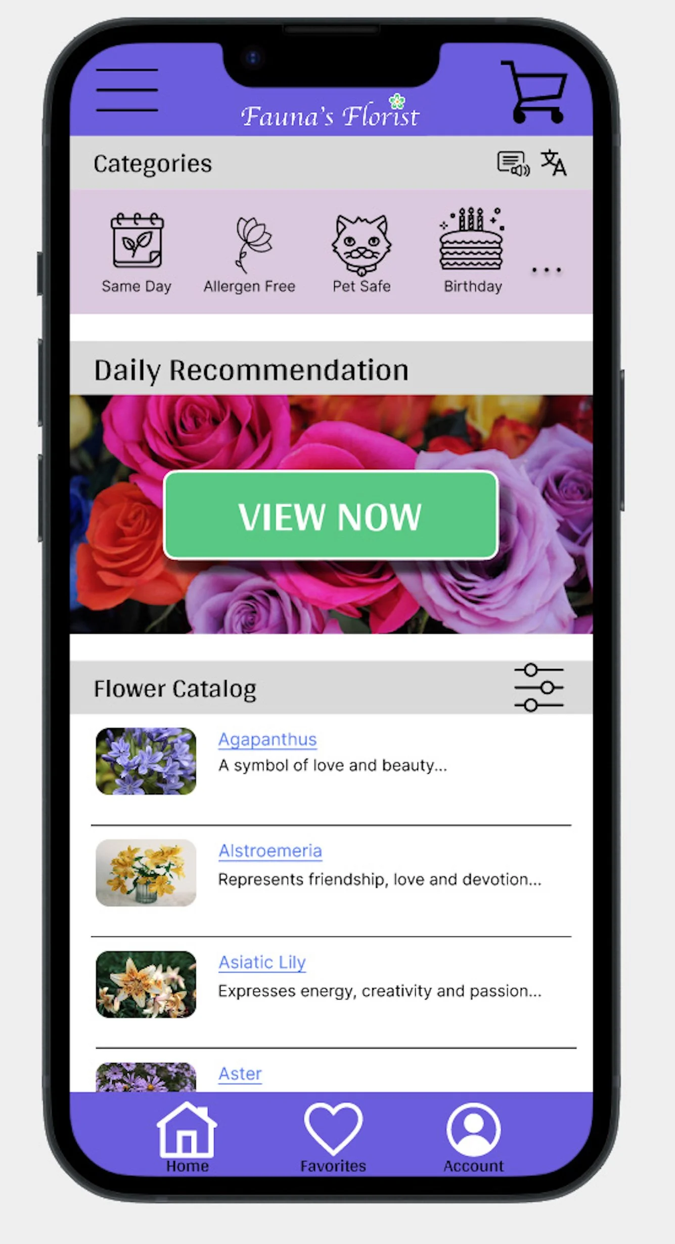 With a few clicks of a button, you can have fresh flowers delivered right to your door with Fauna’s Florist app. We have integrated screen reader technology to make the process fast and efficient.