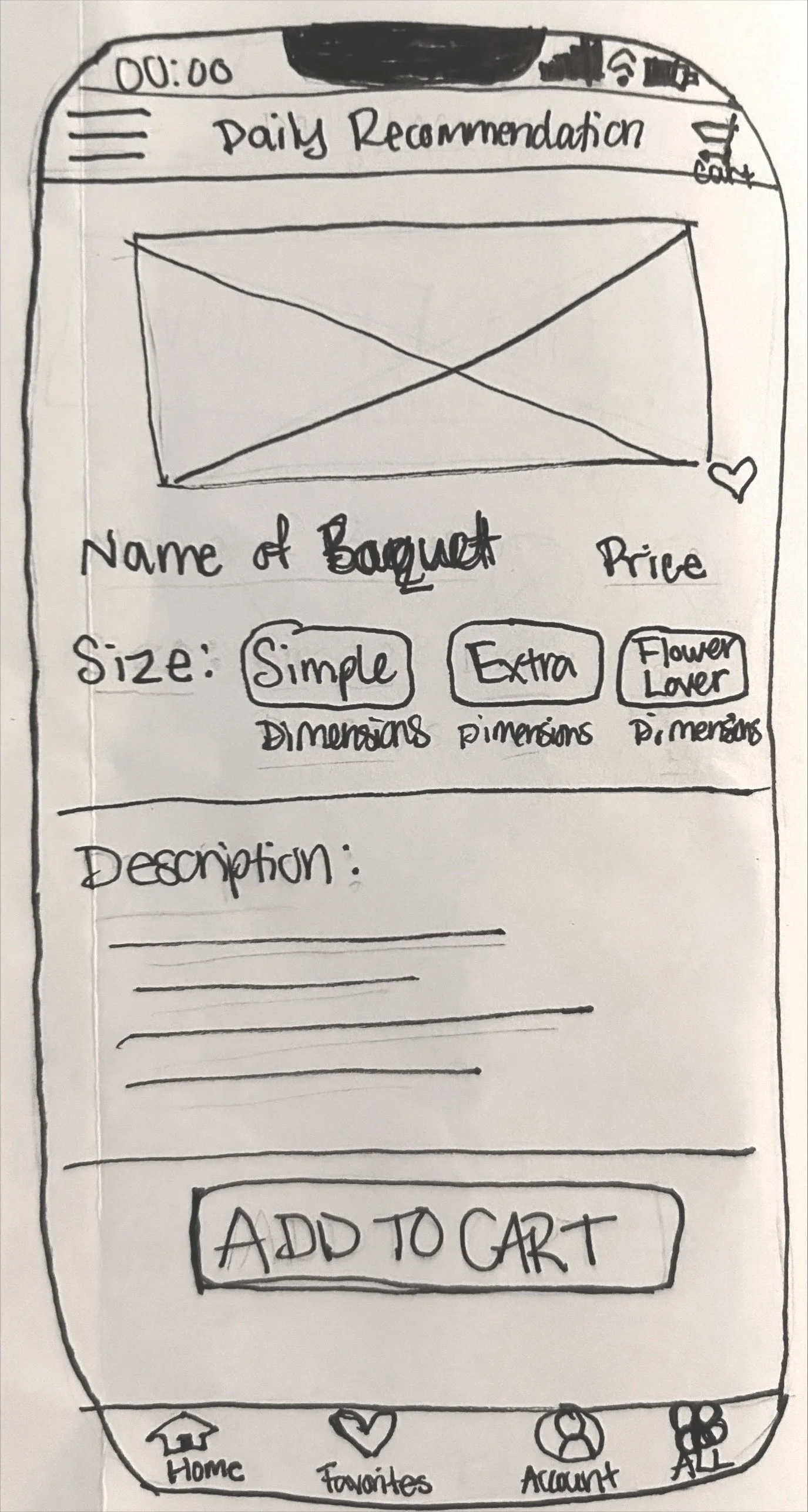 After the first iteration, I made the category icons and flower icons smaller to draw more attention to the daily recommendation.